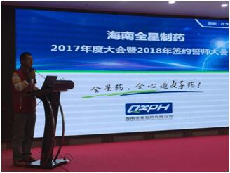 海南全星制藥2017年度大會暨2018年簽約誓師大會圓滿結(jié)束2017年12月25-28日,海南全星制藥有限公司于??谟兰未缶频暾匍_了2017年度大會暨2018年簽約誓師大會。大會以“新起點·轉(zhuǎn)型·創(chuàng)新·合規(guī)”為主題,總結(jié)2017年銷售工作及存在問題,并對2018年做出了詳盡的銷售工作計劃。會議在暖場片及參會人員熱烈的掌聲中拉開帷幕。