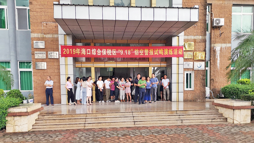 為增強(qiáng)駐區(qū)企業(yè)員工的國防觀念和防空意識,了解和識別防空警報信號,掌握防空襲疏散隱蔽知識,??诰C合保稅區(qū)聯(lián)合我司開展“九一八”防空警報試鳴演練活動。此次活動由綜保區(qū)統(tǒng)一指揮,我司負(fù)責(zé)具體實(shí)施,社事局局長黎晨主持,財政局局長王振武、園管局局長馬慶禮、原紀(jì)檢監(jiān)察室主任李軍、社事局副局長李建玲、經(jīng)發(fā)局副局長歐文、綜保倉儲物流公司、保安部、市中醫(yī)院等領(lǐng)導(dǎo)及相關(guān)部門負(fù)責(zé)人參加觀摩演練。