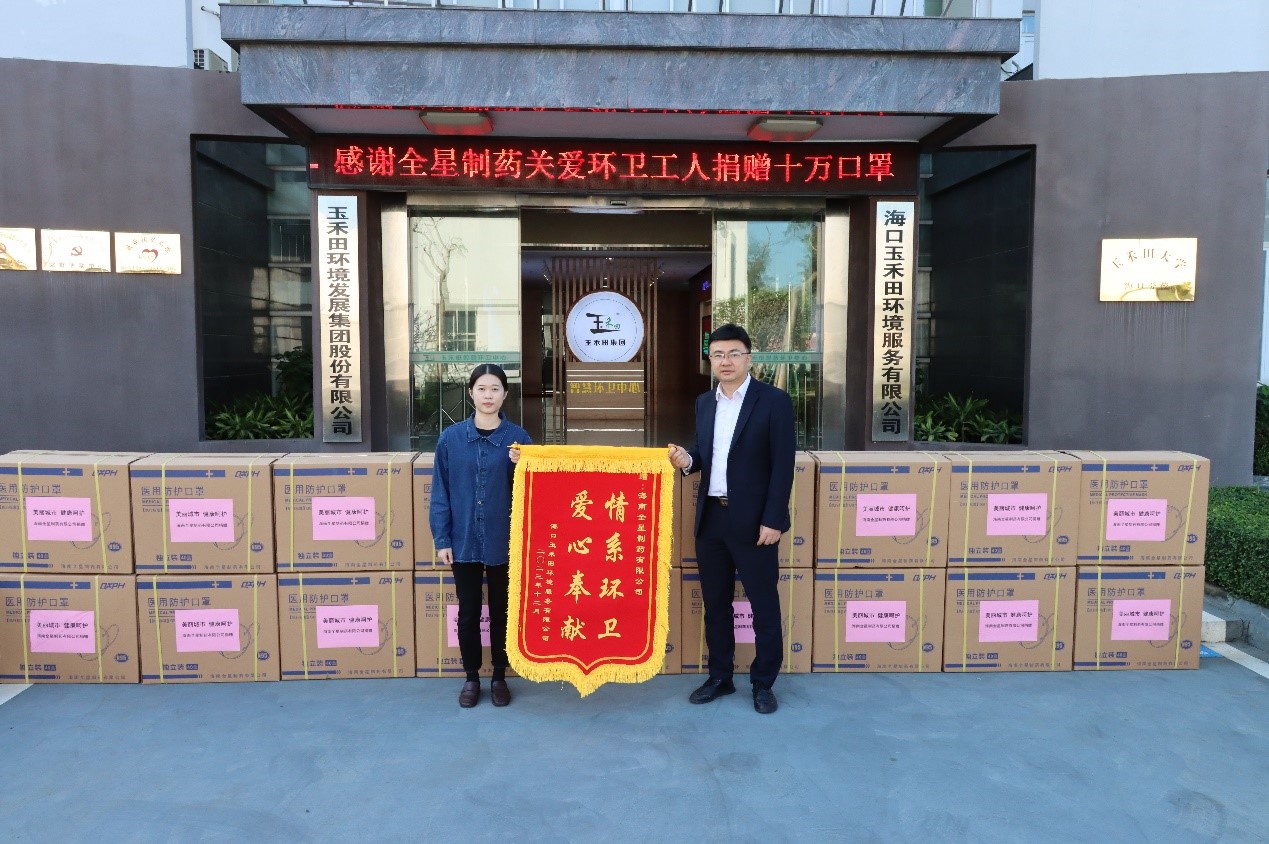 海南全星制藥有限公司向海口市環(huán)衛(wèi)工人贈(zèng)送35萬(wàn)個(gè)醫(yī)用口罩